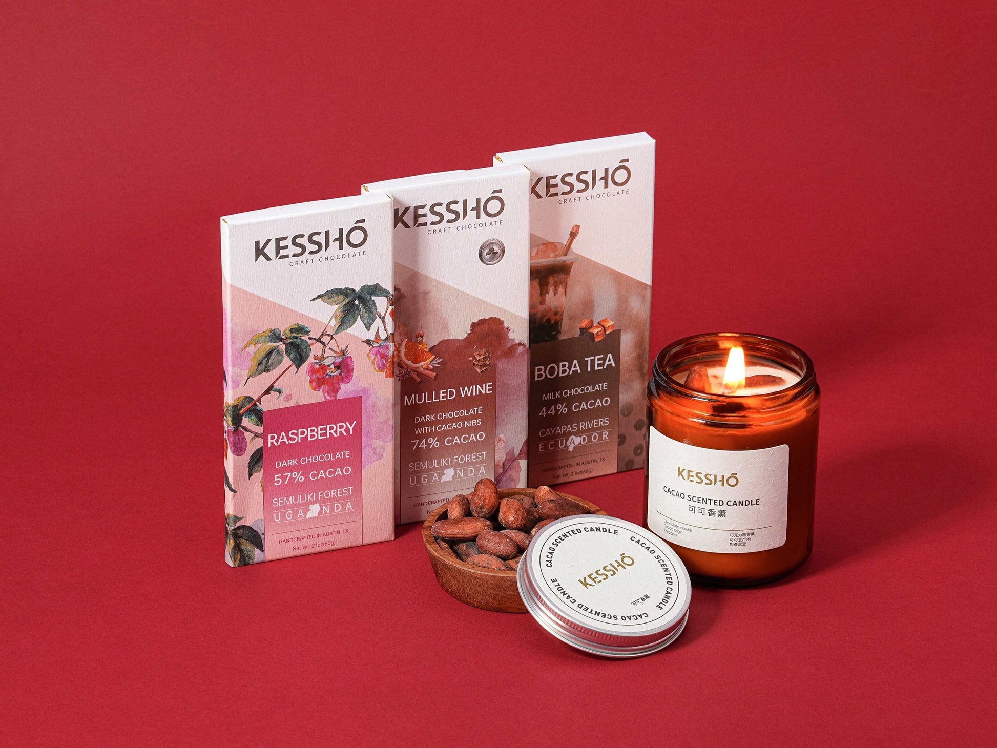 Indulge yourself with our fruit-forward dark bean-to-bar chocolate. Made with cacao beans sourced from Simuliki Forest in Uganda and fortified by powdered raspberries, this sweet and tangy delight has a depth that is sure to tantalize your taste buds.